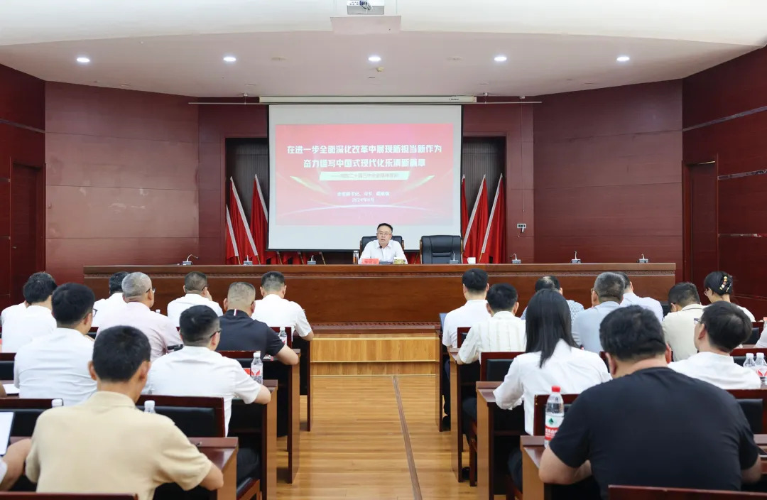 戴旭强围绕“从改革开放的历史沿革中,读懂党的二十届三中全会的里程碑意义”“从国内外的形势变化中,读懂进一步全面深化改革的目标使命”“从全面深化改革的宝贵经验中,读懂‘六个坚持’的原则指引”“从保障和改善民生的重大举措中,读懂以人民为中心的价值取向”“从党的自我革命中,读懂将改革开放进行到底的历史担当”五个维度,与大家分享学习体会。他指出,党的二十届三中全会是在以中国式现代化全面推进强国建设、民族复兴伟业的关键时期召开的一次十分重要的会议。必须完整准确领会把握全会的重大意义、精神实质,始终保持紧跟紧随抓改革、谋发展的政治定力和战略定力,以实际行动坚定拥护“两个确立”、坚决做到“两个维护”。