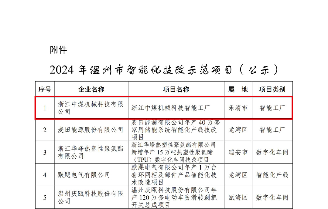 根据温州市人民政府《关于全面加快科技创新推动工业高质量发展的若干政策意见》(温政发〔2023〕8号)和温州市经济和信息化局《关于开展温州市2024年度智能化技术改造示范项目遴选工作的通知》(温经信投资〔2024〕13号)精神,通过县(市、区)经信部门推荐申报,市经信局对申报项目开展资料审核和专家评审,拟将浙江中煤机械科技智能工厂等22个项目遴选为2024年温州市智能化技改示范项目(名单见附件)。
